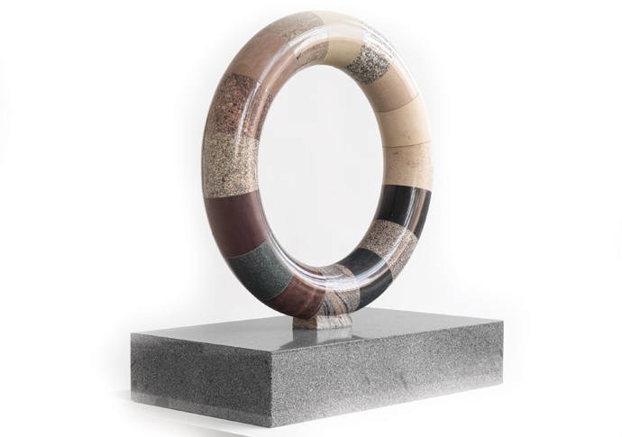“Several of the sculptures in the exhibition feature Lewisian Gneiss rock from the Isle of Barra in the Outer Hebrides,” says Angela. “At three billion years old, it is one of the oldest rocks in the world – two-thirds the age of the planet. It is the oldest material you are ever likely to hold in your hand. Ever. That was very powerful for me, and of course you have immense respect and reverence for such a stone. I also acquired White Anorthosite rocks from the Isle of Harris in the Outer Hebrides, which are 2.5 billion years old. It is known as ‘moon rock’ as it is the same type of stone that the astronauts recovered from the Moon in the Apollo 15 mission in 1971.