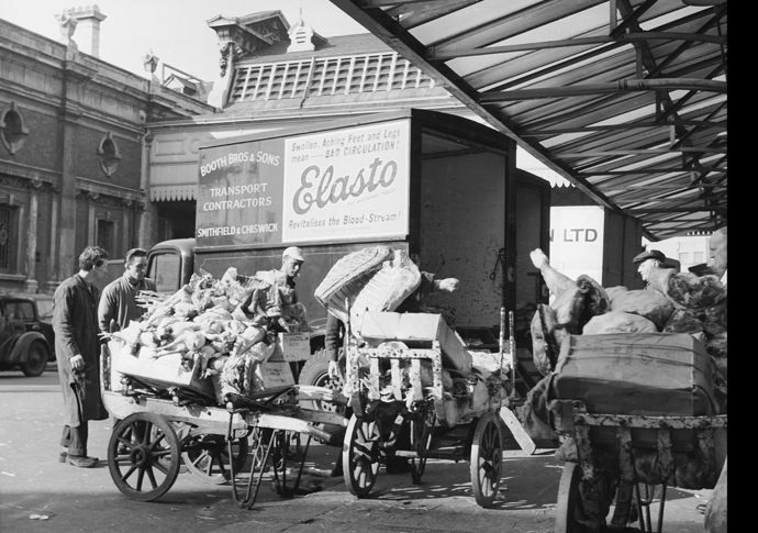 Unloading meat and poultry at Smithfield Market in the 20th century. Photo: Museum of London (Henry Grant)