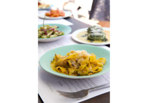 “Pici” is a like a thick spaghetti, the slippery coils served here with a creamy sauce of porcini mushroom and Umbrian sausage meat.