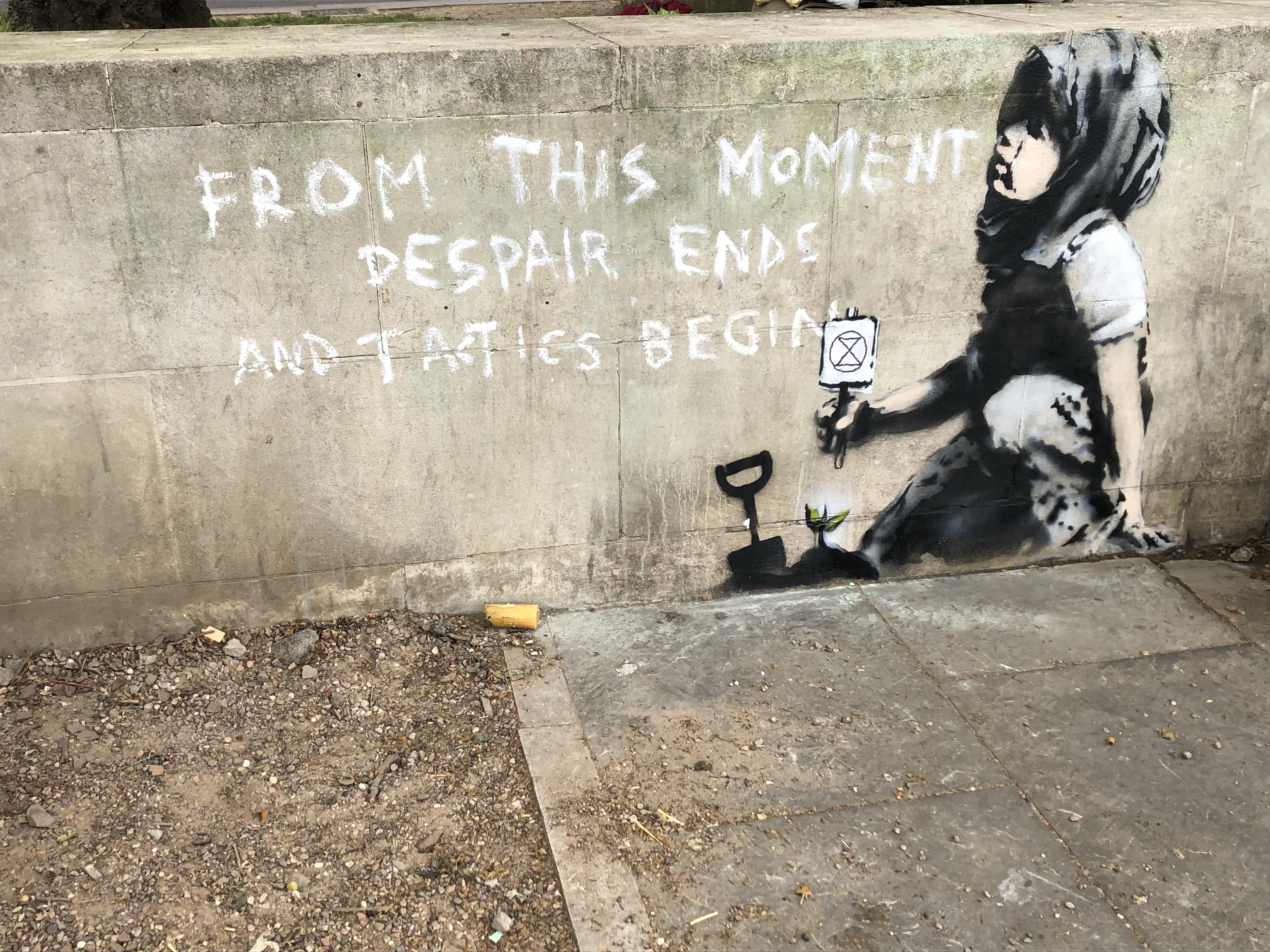 A SUSPECTED Banksy mural sprung up on a wall in Marble Arch marking the end of a ten day protest by Extinction Rebellion activists.