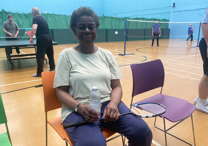 Josephine Thomas, 67, is another badminton player who is determined to win at her first year in the games. “I suffer with sickle cell, so I have to be careful with too much exertion, so I do about an hour here. I’m going into hospital on Friday [today] for a red cells exchange, which I have to do every six weeks. Having these transfusions keeps me well, and stops me having crises. And I’m able to do this as well, which is great…and once I’m done here, I go and do mundane things at home… It makes me feel part of the community.”