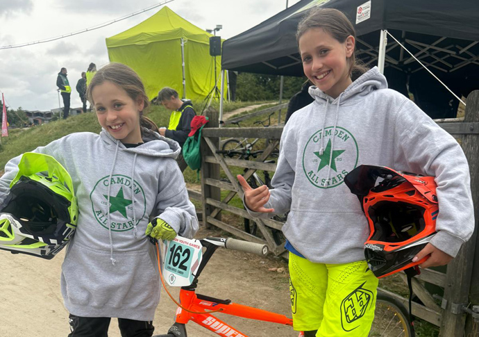 Sisters Georgia (left) and Maisie Surtees competed in the BMX event, with Georgia earning a bronze medal