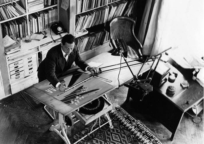 Henri – FHK – Henrion working at home. [Colin Tait, FHK Henrion Archive, University of Brighton Design Archives]