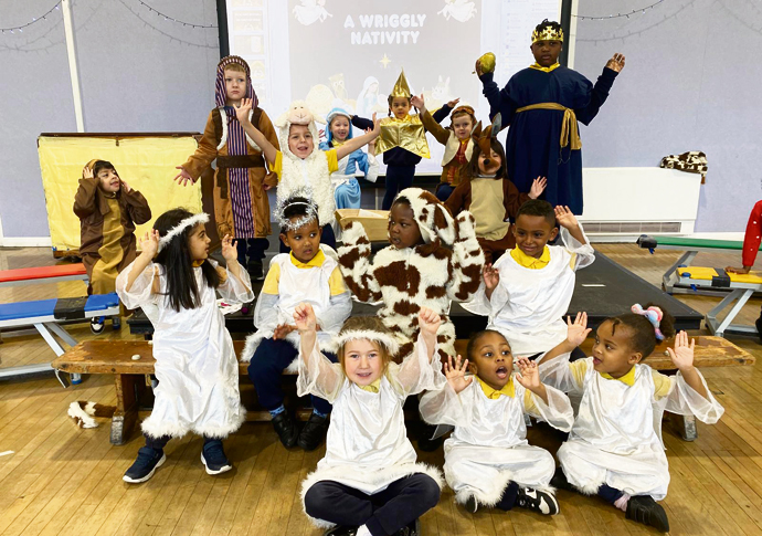 Meanwhile, at Christ the King Primary School in Finsbury Park, little angels, stars, cows, and shepherds took to the stage to act out the traditional story.