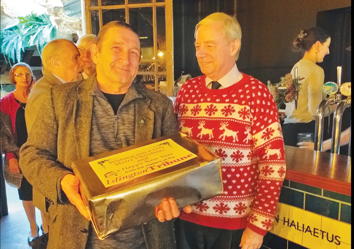 Meanwhile, hampers – which were supplied by Sainsbury’s in Camden Road – were delivered at the Islington Veterans Association Christmas lunch at the Owl and Hitchhiker in Holloway Road.