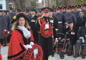 A procession made up of members of the armed forces alongside police officers made its way down Upper Street after meeting outside the Town Hall. The Mayor of Islington, Cllr Una O’Halloran, laid a wreath on the permanent memorial in Islington Green where a service took place to mark the minute’s silence at 11 o’clock.