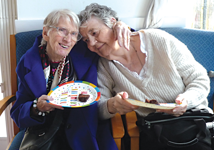Irene, left, celebrating her 87th birthday with Hanna at Whittington Park Community Association’s 60-plus lunch club, which meets Monday to Friday 11.30am to 2pm