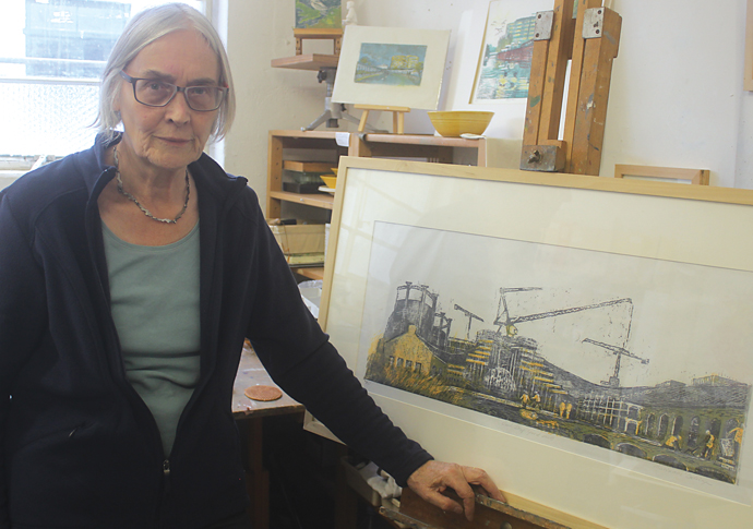 AN artist who lives in Thornhill Square, Barnsbury, has a studio with walls stocked high with artwork and is looking for a place to showcase it. Marianne Fox Ockinga, 75, has been sketching, painting and etching building works in King’s Cross since construction work in the area began in 2001.