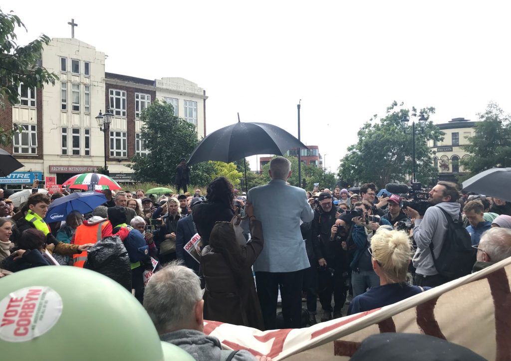 Jeremy Corbyn addresses the crowd in Navigator Square, Archway