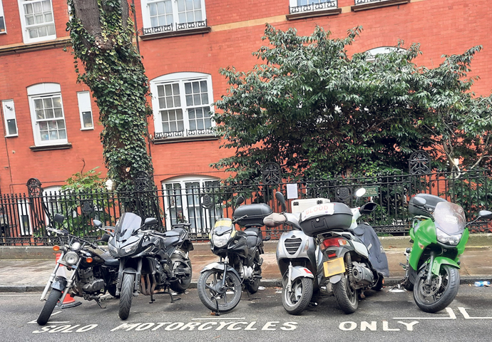 A narrow, curving street becomes a mini Brands Hatch. Trucks, lorries, cars and motorbikes (pictured) bank up. Residents experience noisy, late-night deliveries.