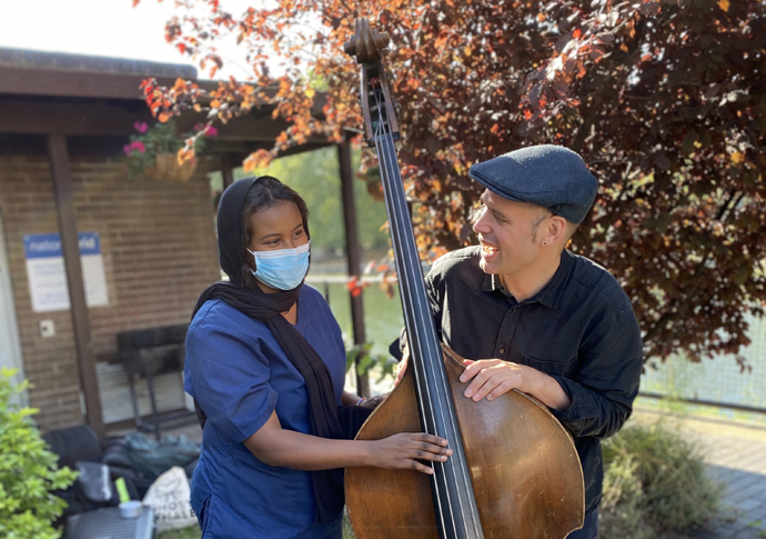 Carer Leyla’s double bass lesson with Ben Hazleton