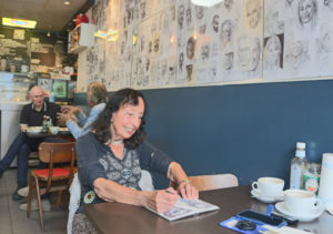 Nargiz Price sketching at Mario’s Café in Kentish Town