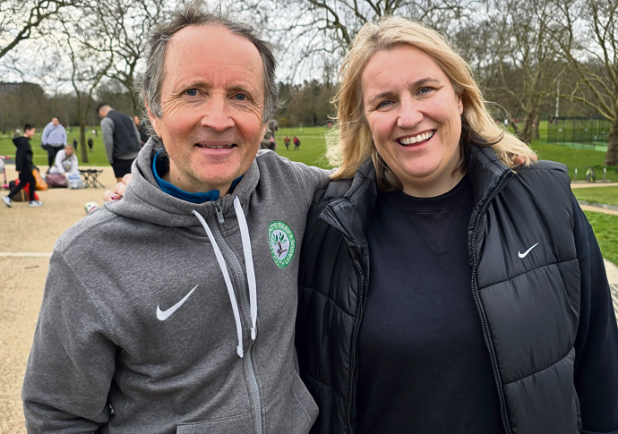 Will Cave, who set up the league with Sid Hayes and Sophie Sparrow, pictured with Emma Hayes